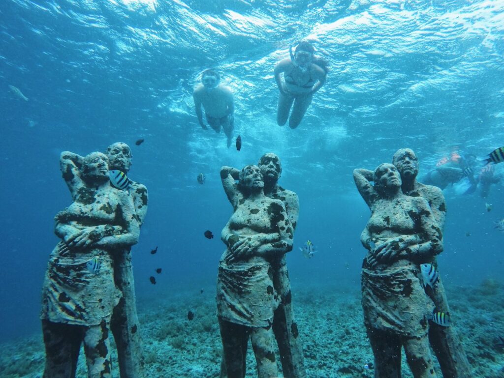 Snorkeling z żółwiami i podwodnymi posągami. Zwiedzanie Gili Meno i Gili Air. Czas wolny i wspólna kolacja.